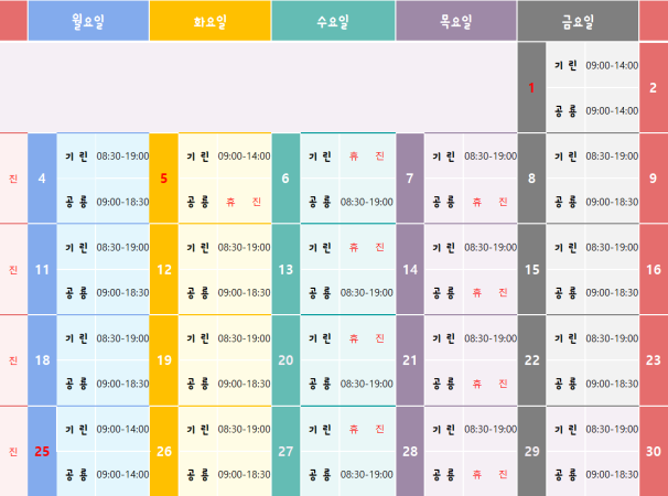 ▷ 토요일 : 08:30~14:00(점심시간 없음)